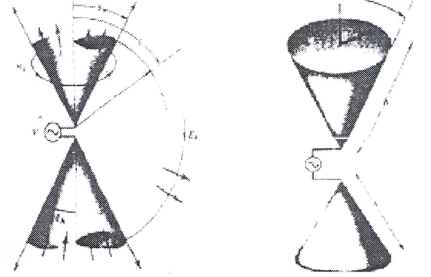 شکل بالا: الف- پرتو تشعشعي يك آنتن دو مخروطي نامحدود ؛ ب- آنتن ديسك و مخروط