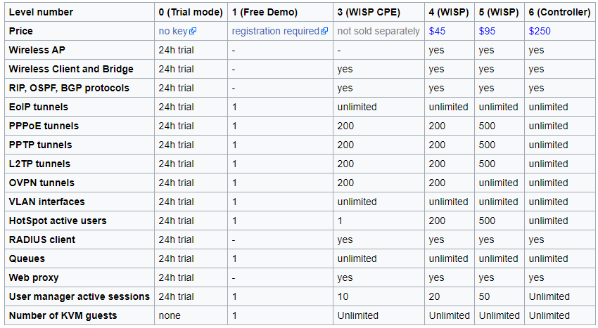 لایسنسها از صفر تا 6 نامگذاری شدهاند و لایسنس دو مربوط به روترهای قدیمی است که از RouterOS 2.8 استفاده میکنند اگر از این نوع لایسنس دارید، این لایسنس همچنان کار خواهد کرد ولی برای آپگرید باید لایسنس جدید خریداری کنید. هر چقدر شماره لایسنس بالاتر بره، امکانات بیشتری در اختیار شما قرار میدهد و البته هزینه خرید آن هم بیشتر میشود. نکات مهم درباره لایسنسهای تجهیزات میکروتیک.
